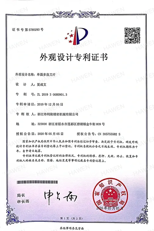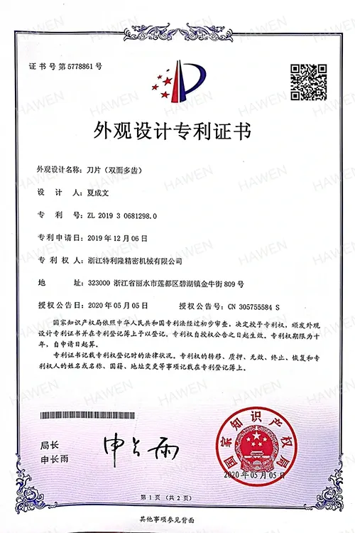 شهادة براءة التصميم - 11 مادة